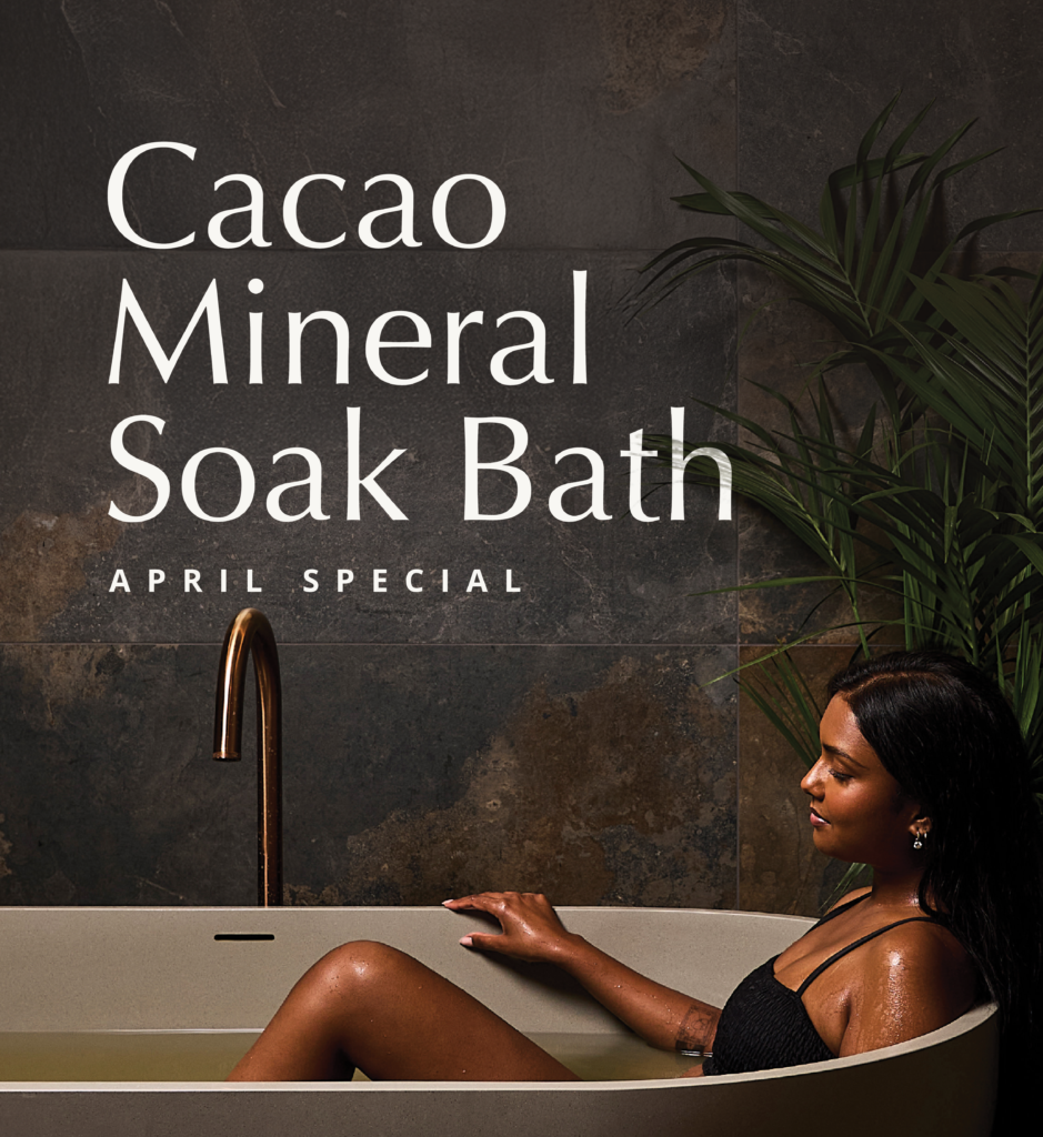 Our Cacao Private Bath blends warm mineral waters with rich cacao to create a soothing, skin-softening soak.