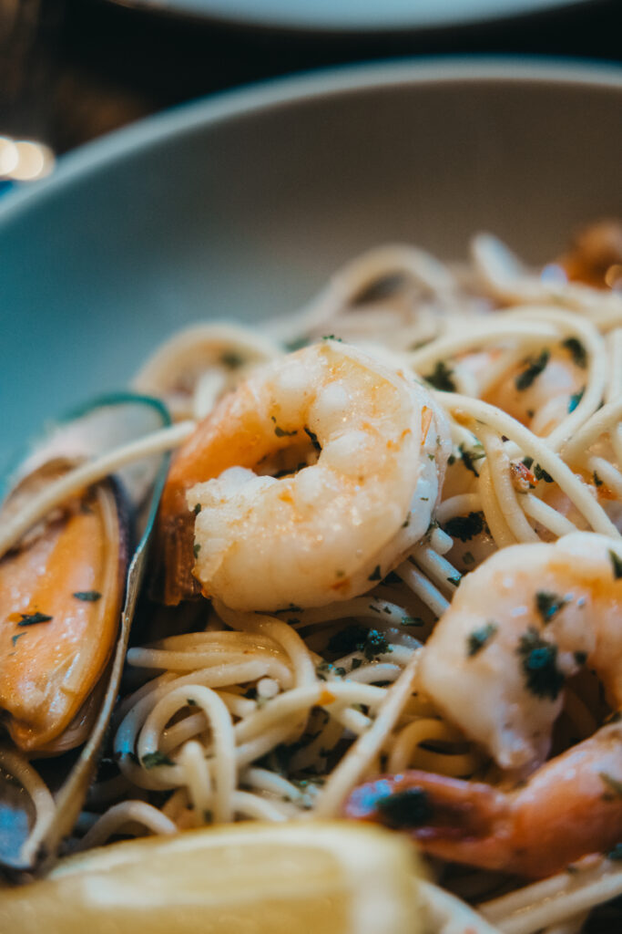 The lunch menu is served from 11.30am to 2.30pm offering a Pavilion Schnitzel, Seafood Pasta, Cheese burger,